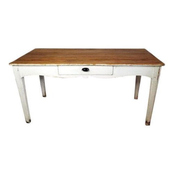 Antique Primitive French Farm Table Country White Scalloped Edge With Drawer Contact Us For Shipping Quote