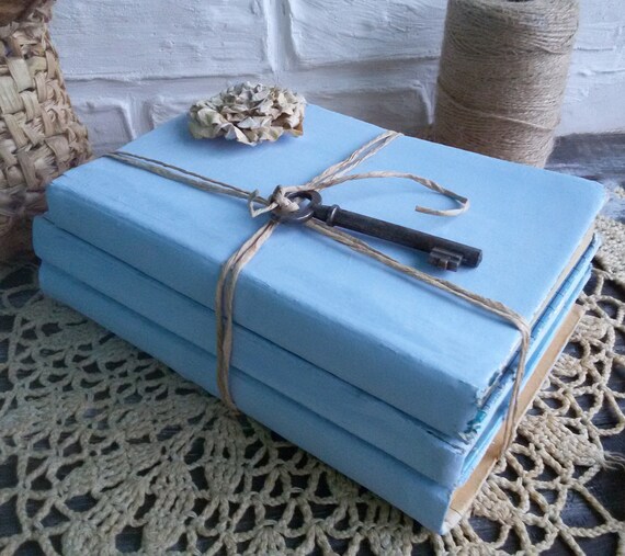 Pale Blue Books Bundle Decorative Books Collection Vintage Nursery Boy Room Baby Boy Nursery Decor Country Style Old Book Stack Painted Book